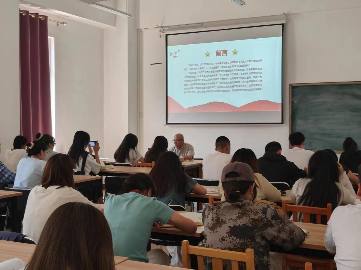 活动中,杨广君老师解读了《中国共产党处分条例》,带领着全体成员进行了深入而细致的学习。在杨广君老师的引导下,同志们认真聆听、积极思考,对条例的内容有了更加深刻的理解和认识。通过此次学习,进一步强化了党员和积极分子们的纪律意识和规矩意识,有助于在今后的学习和工作中更好地发挥先锋模范作用,以更高的标准要求自己。