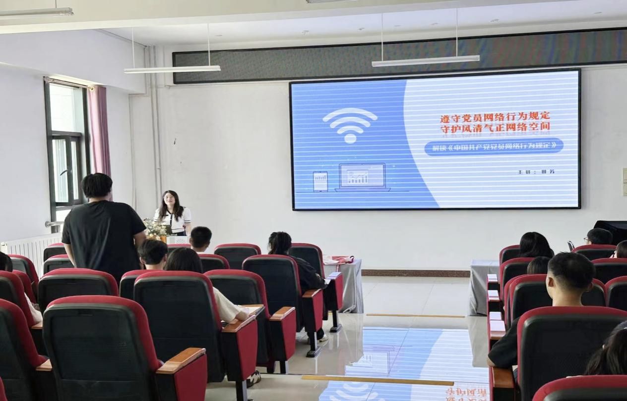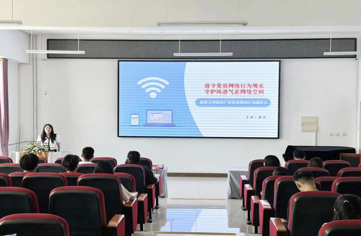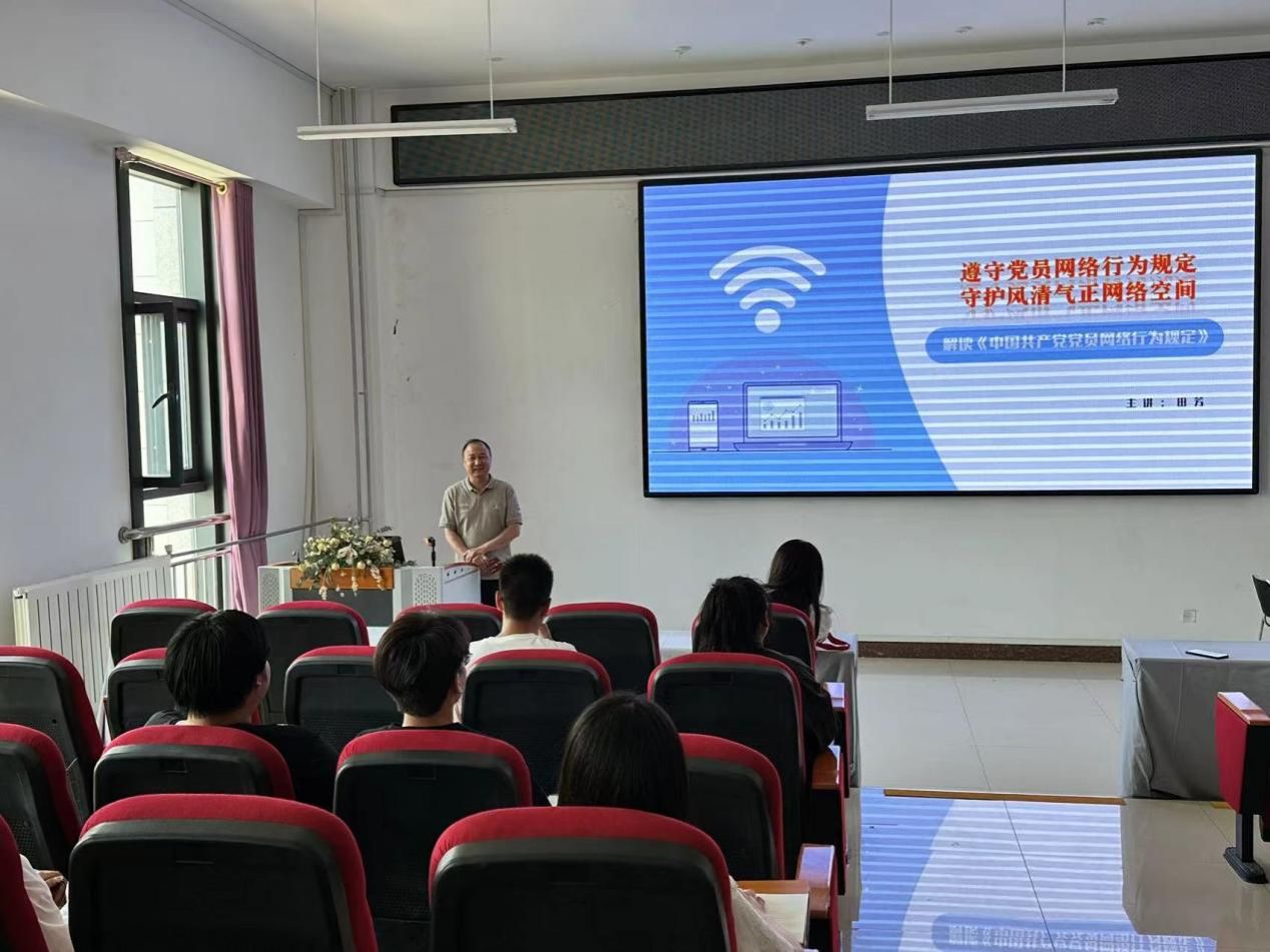 5月28日中午12:30,公司在明德楼B401进行解读《中国共产党党员网络行为规定》党课培训,本次培训主讲人是公司党委宣传部副部长田芳,培训由公司党委委员、副经理李志春主持。
