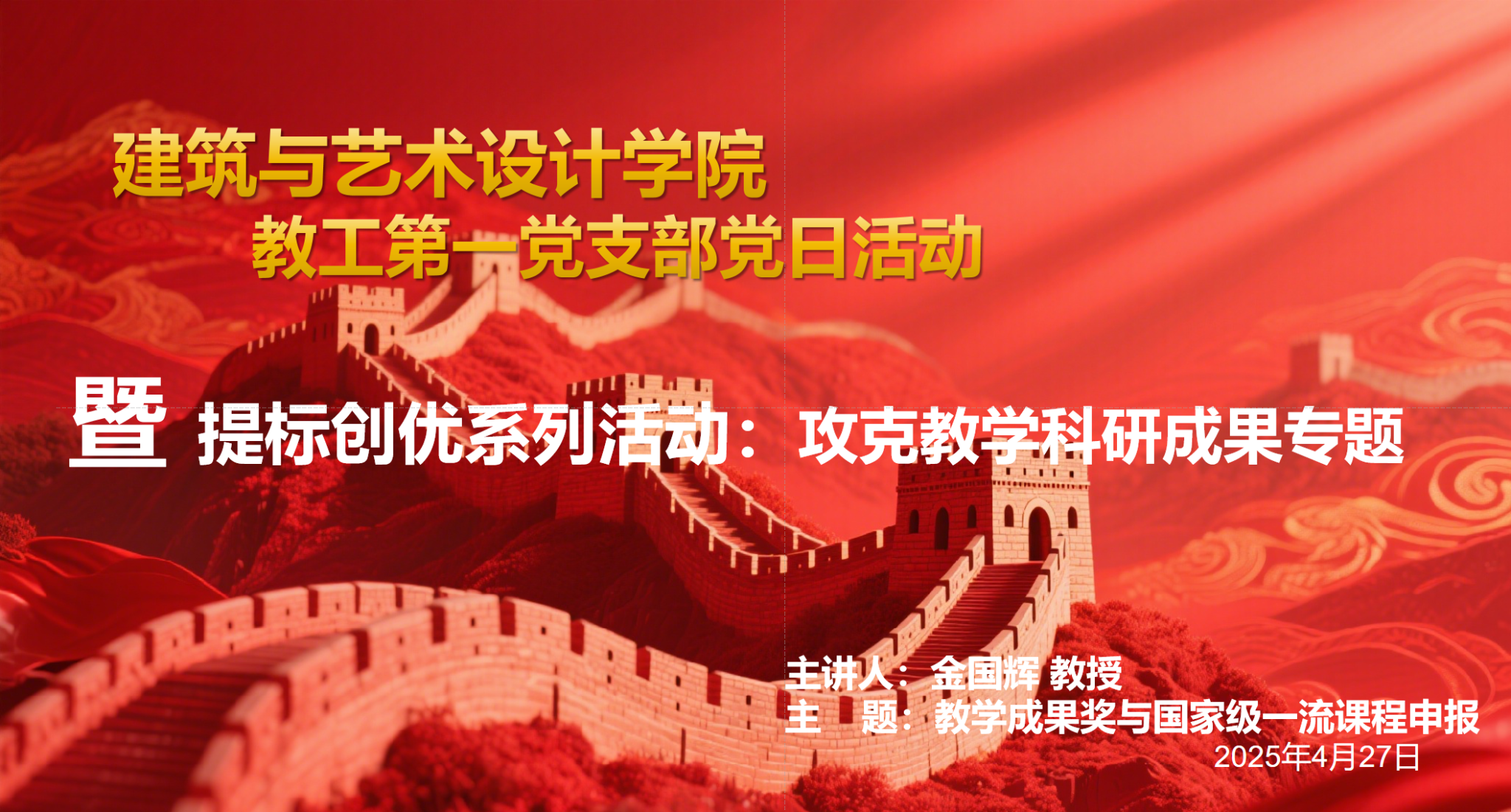 为深入贯彻落实党的教育方针,充分发挥党建引领作用,推动教学科研工作高质量发展,太阳成集团tyc122ccvip教工第一党支部于2025年4月27日14点30分在明德楼东A503开展本支部党日活动,暨提标创优系列活动——攻克教学科研成果专题。本次活动特邀土木工程公司金国辉教授进行关于“教学成果奖”、“国家一流课程”申报的专题讲座与交流,为支部教师带来了一场干货满满的学术盛宴。