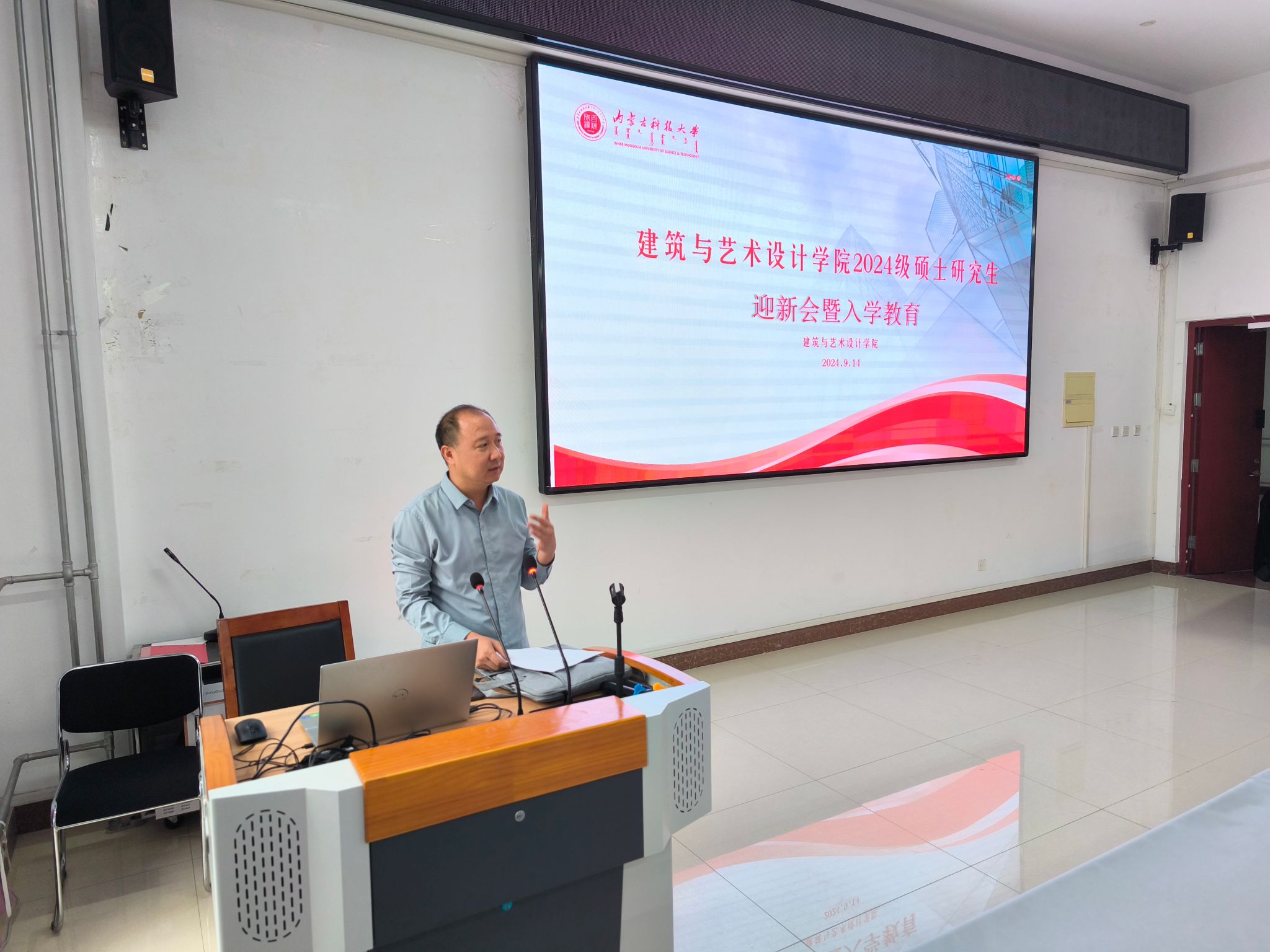 太阳成集团tyc122ccvip2024级硕士研究生迎新会于2024年9月14日在明德楼B401顺利举行,针对公司建筑学一级学科硕士点、设计学一级学科硕士点和设计专业硕士学位点,经理韩冬楠、副经理李志春分别介绍了相关研究生教育基本规章制度、研究生科研方向选择、研究生未来职业规划、导师选择等情况。建筑学学科王伟栋教授、设计学/设计学科边坤教授分别对2024级硕士研究生介绍了建筑学、设计学/设计学科方向及导师基本情况。