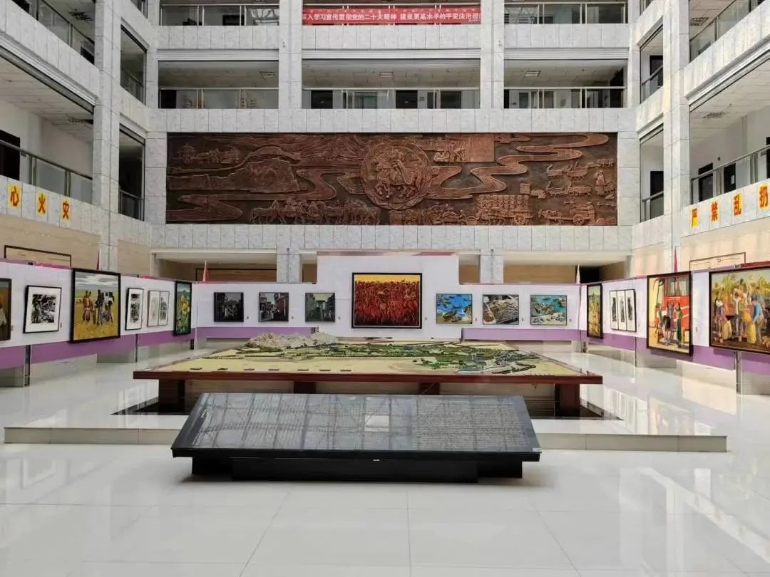 展演分文艺演出和作品展览两部分,磴口县博物馆一楼大厅展出美术学专业作品: