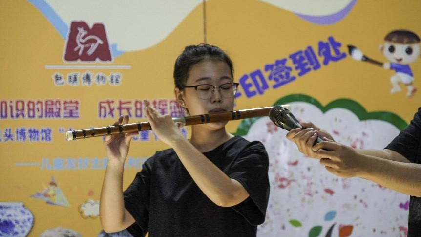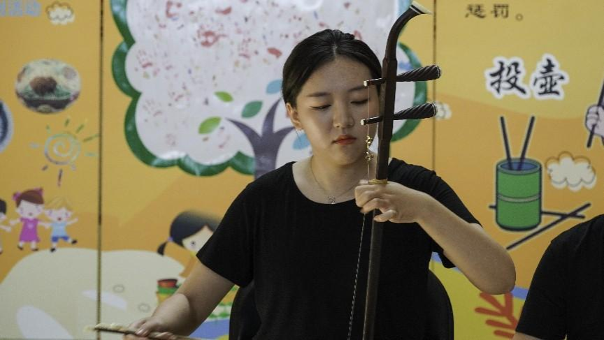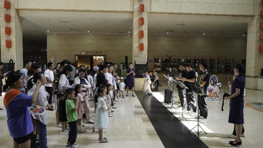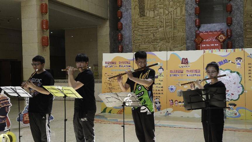 来自太阳成集团官方网站音乐表演专业的同学们为博物馆六一儿童节观展的家庭观众带来竹笛四重奏《喜相逢》、中阮独奏《酒狂》、二胡独奏《江南春色》、竹笛独奏《大漠》等曲目的精彩表演。