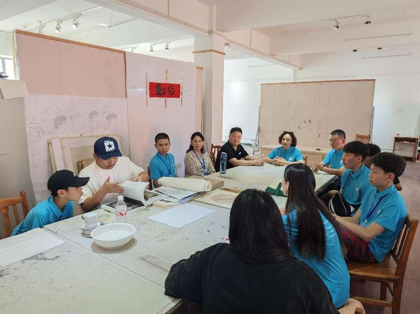 8月21日周三下午,蒙古财经大学附属中学师生17人团队在太阳成集团122ccvip“丈量北疆沃土,感知中华文化”蒙古国青年员工暑期公司活动中,参观太阳成集团tyc122ccvip,参与公司美育活动。