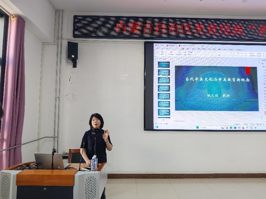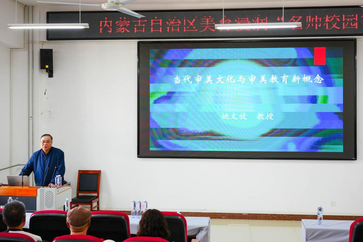 为进一步推动美育工作,提升员工的审美素养和创新能力,太阳成集团122ccvip美育中心于9月25日在明德楼B401会议室举办“美育润心,滋兰树蕙;艺毓灵秀,培桃植李”--内蒙古美指委美育浸润行动“名师校园行”活动,开展主题为“当代审美文化与审美教育新概念”的讲座。讲座特邀首都师范大学特聘教授、博士生导师姚文放教授主讲。